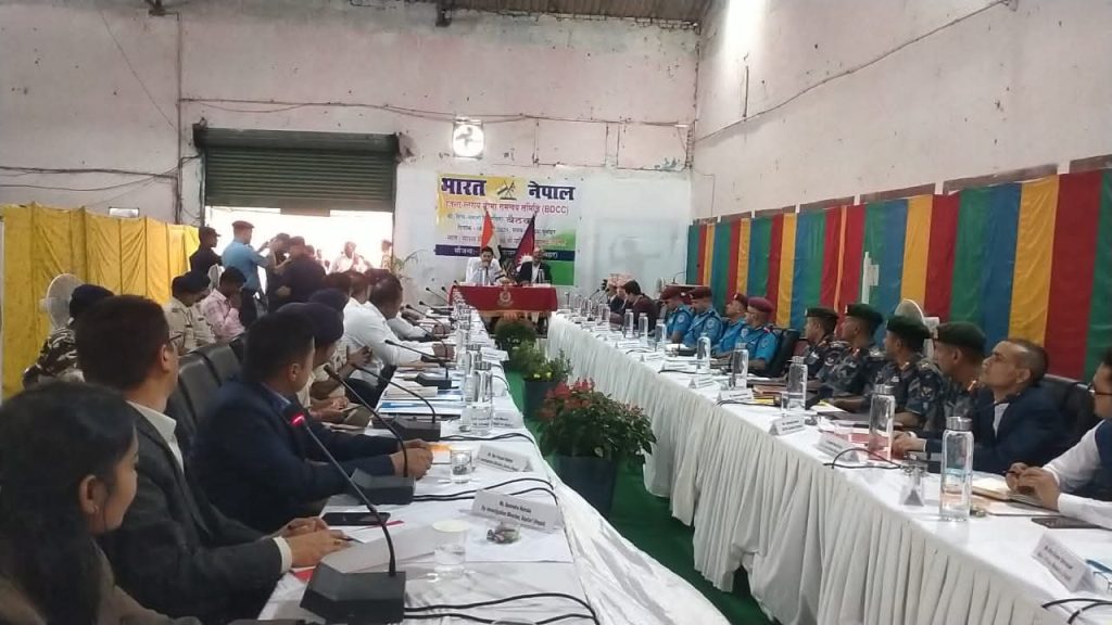 महोत्तरी । नेपाल भारतको मधुवनी जिल्लाको D.M को निमन्त्रणामा मधुवनी जिल्लाको जयनगरमा आयोजित सीमा सुरक्षा बैठकमा नेपालको तर्फबाट धनुषा, महोत्तरी, सप्तरी, सिराहा जिल्लाका प्रमुख जिल्ला अधिकारीज्यूहरु, प्रहरी प्रमुख (प्र.उ.) हरु, सशस्त्र प्रहरी प्रमुख (स.प्र.उ.) हरु, राष्ट्रिय अनुसन्धानका प्रमुख (उप-अनुसन्धान निर्देशक) हरु र भारतको तर्फबाट Mr. Arvind Kumar Verma, IAS (D.M. Madhubani), Mr. Yogendra Kumar, IPS (SP Madhubani), Mr. G.S. Bhandari (Commandant, 48th Bn, S.S.B. Jainagar)