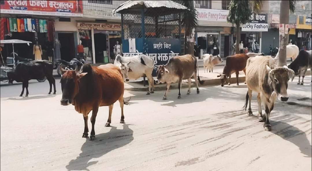 बाँके जिल्लाको नेपालगन्ज बजारमा सामान्यतया गाउँ घरतिर खेतबारीमा खाेला या जङ्गलजस्ता ठाउहरुमा देखिने गाईका बथानहरु शहर बजार क्षेत्रमा खुल्ला छाेड्नु राम्राे हुदैन ।