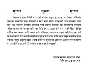 जिल्ला प्रशासन कार्यालय बाँकेले मंगलबार देखी जनता कर्फ्यु लगाउने भएको छ । लकडाउनलाई अवेज्ञा गर्दै स्थानियहरु बाहिर निस्कीएको भन्दै प्रशासनले जनता कर्फ्यु लगाउने घोषणा गरेको हो ।
