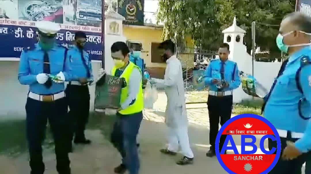 बिश्वमा कोरोनाको त्रास फैलिएको छ बिश्व भरका सम्पुर्ण देशहरुलाई भयभित बनाएको कोरोना विरुद्धमा एबिसी संचार र खबर 24 नेपालको ५. नम्बर ब्युरो टिमले सोमबार नेपालगन्जमा समाजिक कार्य गरेको छ । कोरोना विरुद्ध एबिसी संचार र खबर 24 नेपालले बाँके जिल्लाको नेपालगन्जमा आम जनताको सुरक्षामा दिनरात नभनेर खटिएका नेपाल प्रहरी सशस्त्र प्रहरी ट्राफिक प्रहरी नेपाली सेना सडकका गरिब दुखी लगाएतलाई बिस्कुट पानी चाउचाउ जुस वितरण गरिएको एबिसी संचार पााँच  नम्बर ब्युरो प्रमुख महेन्द्र सिंहले जानकारी दिनुभयो ।कोरोनाको जोखिम सर्व प्रथम सुरक्षाकर्मीहरु रहेको हुनाले थप वितरण कार्य जारी राख्ने ब्युरो प्रमुख सिंहले बताए ।
