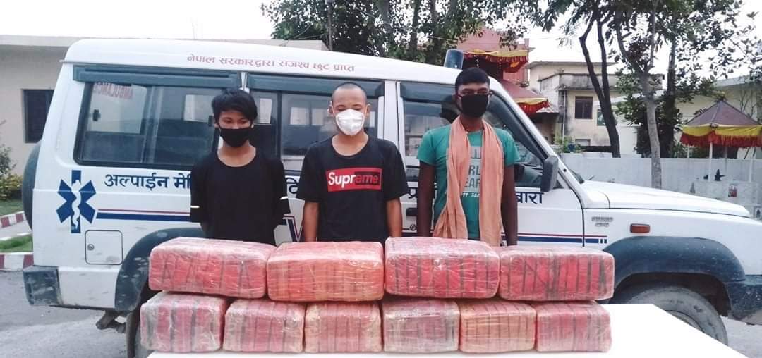उक्त नम्बरको एम्बुलेन्स र ५६ केजी गाँजासहित सर्लाही लालबन्दी –१५ का २३ वर्षीय जीत बहादुर वाईवा, सोही ठाउँ बस्ने २२ वर्षीय दिल बहादुर वाइवा, बहुदरमाई नगरपालिका – ५ बस्ने ३२ वर्षीय हरिशंकर महतोलाई प्रहरीले नियन्त्रणमा लिएको छ ।