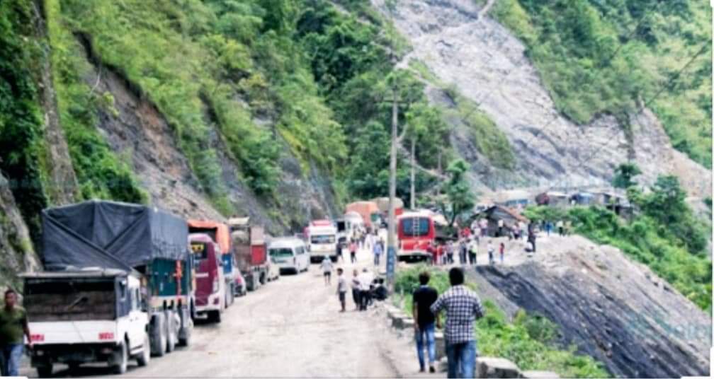 नारायणगढ मुग्लिन सडकखण्डको कालीखोलामा पहिरो खस्दा सडक अवरुद्ध