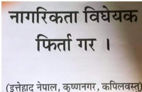 नेपालमा विहेगरि आउने बिदेशी महिलालाई सात बर्ष अनागरिक बनाउने सरकारकाे नागरिकता ऐन संशोधन विरुद्ध मुस्लिम समुदाय विराेध प्रदर्शन गरेकाे छ ।