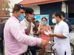 बिरगंज सामुदायिक सेवा केन्द्र तथा सामुदायिक प्रहरी सेवा छपकैया- २ पर्साको अध्यक्ष हाजी श्री ग्यासुदिन ठकुराई ज्को अध्यक्षतामा जिल्ला पर्सा वीरगंज महा-नगर पालिका वडा नं. ०२ स्थित श्रीराम हल चौकमा विश्वनभरी महामारीको रुपमा फैलि रहेको Covid-19 कोरोना भाईसर न्युनिकरण सम्बन्धी जनचेतना मुलक कार्यक्रम गरिनुका साथै माक्स नलगाई हिड्ने मोटरसाइकल चालक, साईकल,बजार तथा बाटोमा हिड्ने पैदल यात्रीहरुलाई बिना माक्स हिडडुल नगर्ने, अटो चालकहरुलाई माक्स नलगाइएको प्यासेन्जर नराख्ने ,भिडभाडमा नजाने भनि सम्झाई बुझाई गरि बिना माक्स हिडेका मोटरसाइकल चालक, साईकल,बजार तथा बाटोमा हिड्ने पैदल यात्रीहरुलाई निःशुल्क माक्स विरतण गरिएको थियो ।