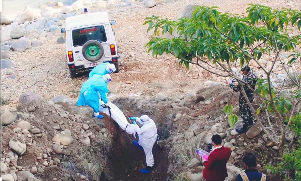 महेन्द्र सिंह नेपाली सेनाको भैरव प्रसाद गणको विषेश टोलीले बाँके बैजनाथ गाउँपालिका–६ सम्झनाकी ४६ वर्षीया कोरोना संक्रमित महिलाको अन्तिम संस्कार गरिदै । राँझा । बाँकेमा कोरोना भाइरस सङ्क्रमणका कारण हालसम्म ६३ जना बिरामीको मृत्यु भएको छ । जिल्लामा बसोबास गर्ने ३५ र बाहिरी जिल्लाबाट उपचारका क्रममा आइ अस्पतालमा ज्यान गुमाएका २८ गरी ६३ जनाको मृत्यु भएको जिल्ला स्वास्थ्य कार्यालयले जनाएको छ । कार्यालयका कोरोना स्रोतव्यक्ति नरेश श्रेष्ठका अनुसार लुम्बिनी प्रदेशका साथै कर्णाली र सुदूरपश्चिम प्रदेशका सङ्क्रमित बिरामीसमेत उपचारका लागि शिक्षण अस्पताल कोहलपुर र नेपालगञ्जस्थित भेरी अस्पतालमा प्रेषण हुने गरेकाले मृतकको सङ्ख्या बढ्दो रहेको छ । भेरी अस्पताल नेपालगञ्जमा उपचाररत दाङका एक कोरोना सङ्क्रमितको आज बिहान मृत्यु भएको छ । दाङको घोराही उपमहानगरपालिका—१५ निवासी ५९ वर्षीय पुरुषको उपचारका क्रममा अस्पतालमै बिहान ५ः२५ बजे मृत्यु भएको स्रोतव्यक्ति श्रेष्ठले जानकारी दिए । ती पुरुषलाई स्वास्थ्यमा समस्या भएपछि कात्तिक ६ गते राप्ती स्वास्थ्य विज्ञान प्रतिष्ठान दाङमा उपचारको क्रममा कोरोना सङ्क्रमण पुष्टि भएपछि थप उपचारका लागि कात्तिक २० गते साँझ भेरी अस्पताल नेपालगञ्जमा भर्ना गरिएको थियो । उनको भेरी अस्पतालको कोभिड आइसियूमा उपचारकै क्रममा मृत्यु भएको हो ।रासस