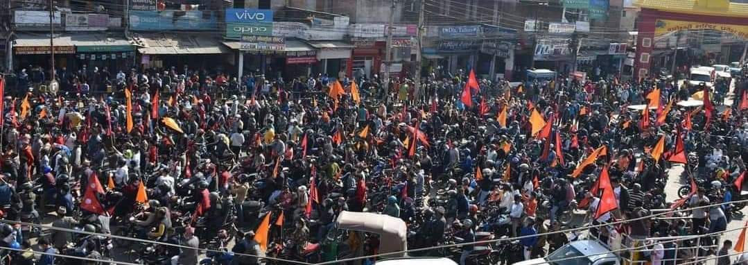 (महेन्द्र सिंह) बाँके। शनिबार राजावादीहरुले नेपालगन्जमा मोटरसाइकल र्यालीसहित प्रदर्शन गरेका छन् । हिन्दू राष्ट्रवादी समूहको आयोजनामा मोटरसाइकल र्यालीसहितको प्रदर्शनमा राजावादी मात्र होइन, सत्तारुढ नेकपा र प्रतिपक्षी कांग्रेस समर्थकको पनि सहभागी भएको आयोजकले जनाएको छ ।