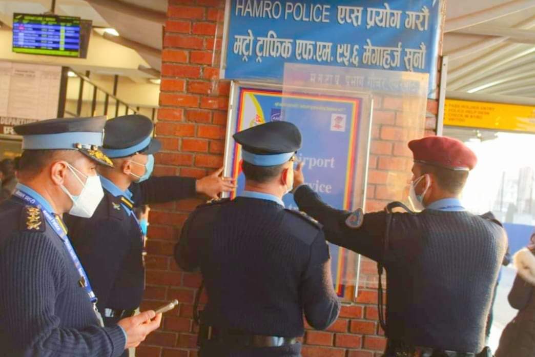 काठमाडौं । त्रिभुवन अन्तर्राष्ट्रिय विमानस्थलको आन्तरिक तथा अन्तर्राष्ट्रिय उडानतर्फ पाल्नुहुने यात्रु महानुभावहरुलाई विमानस्थल प्रहरीबाट प्रदान गरिने सेवा, प्रहरी कार्य एवम् सुरक्षा सम्बन्धी थप स्पष्टताको लागि विमानस्थलभित्र यात्रुहरुको बढी चाप हुने स्थानहरु तथा यात्रुहरुको सजिलै पहुँच हुने स्थानहरुमा स्पष्ट रुपमा देखिने गरी सूचना एवम् जानकारीमूलक स्टिकरहरु टाँस गरी सू-सूचीत गरिएको र विमानस्थलभित्र सेवा लिन आउनुहुने यात्रु तथा आम नागरिकहरुलाई कुनै समस्या वा गुनासो भएमा सजिलै प्रहरीलाई जानकारी गराउन सकिने गरी सम्बोधन गर्ने व्यवस्था समेत रहेको । अन्तर्राष्ट्रिय बिमान स्थलका सुरक्षा प्रमुख वरिष्ठ प्रहरी उपरीक्षक एसएसपी राजेश बास्तोलाले जानकारी दिनुभएको छ ।