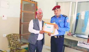 कपिलवस्तु । जिल्ला प्रशासन कार्यालय कपिलवस्तुका प्रमुख जिल्ला अधिकारी दीर्घनारायण पौडेलले जिल्ला प्रहरी कार्यालय कपिलवस्तुका प्रहरी प्रमुख एसपी नवराज अधिकारीलाई कपिलवस्तु जिल्लाको शान्ति सुरक्षा, अपराध अनुसन्धान तथा नियन्त्रण लगायतका सम्पूर्ण जिम्मेवारीहरु उच्च मनोवलका साथ सम्पन्न गरेको भन्दै सम्मान गरेको छ ।