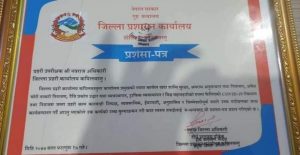 प्रमुख जिल्ला अधिकारी पौडलेले एसपी अधिकारीले गरेका कार्यहरुको उच्च मूल्याङ्कन गरी प्रशंसा पत्र प्रदान गरिएको उल्लेख गरेका छन् ।