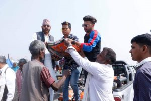 (तेज वलि) बाके । नरैनापुर वडा न.१ स्थित सुईमा गाउमा केहि दिन अगाडि भिष्ण अागलागि भएको थियो ।उक्त अागलागि बाट २५ घर नष्ट भयका थिए भनी सयौ घरपरिवार घर बिहिन भनी भएका थिए।उक्त अागजनि पिडितहरुदरलाई अाज नेपालका चर्चित गायक दुर्गेस थापाले अाज बुधबार उक्त ठाउमै पुगेर सहयोग गरेका छन ।अाफै त्यस ठाउमा पुगेर आर्थिक सगसगै खाध्यान पनि सहयोग गरेका छन ।