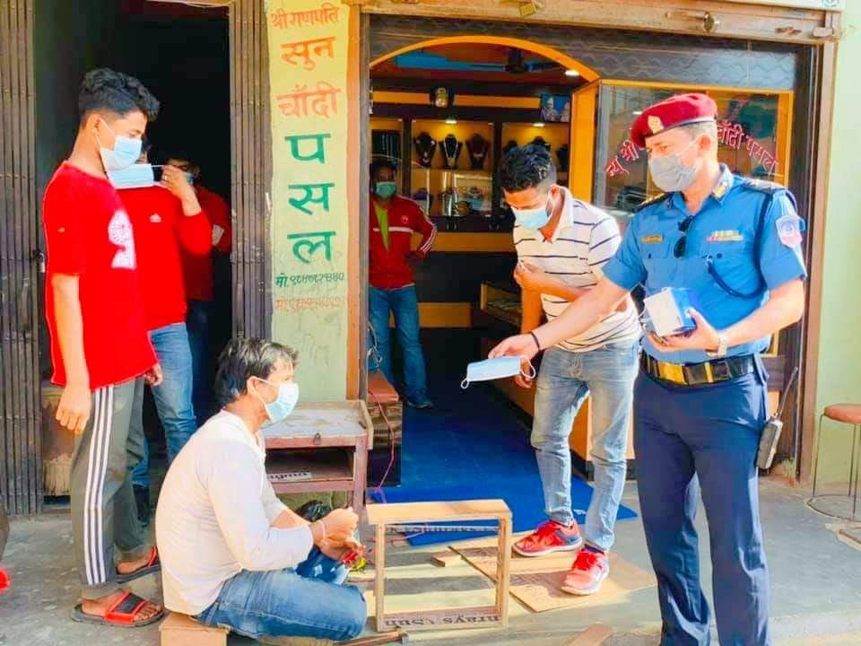 उनीहरुले पसलहरुमा पुगेर व्यवसायीहरूलाई सचेत तुल्याए । सतर्कता अपनाएर मात्रै व्यवसाय सञ्चालन गर्न आग्रह गरे । मास्क नलगाएका पैदल यात्रीहरूलाई मास्क प्रदान गरे ।