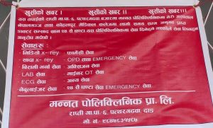 यसैबीच मन्नत पोलिक्लिनिकको लोकतन्त्र दिवसको अवसर पारी शनिबार एक कार्यक्रमका बीच उद्घाटन गरिएको छ । उक्त पोलिक्लिनिकको उद्घाटन राप्ती गाउँपालिकाका अध्यक्ष नुमानन्द सुवेदीले रिबन काटेर विधिवत् उद्घाटन गरेका हुन् ।