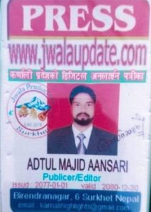 यसैक्रममा शनिबार दिउँसो पनि सुर्खेतबाट चलेको ‘ज्वालाअपडेट डट कम’ नामक अनलाइनको प्रेस पास बोकेका अब्दुल मज्दिज अन्सारी नाम गैर पत्रकार पक्राउ परेका छन ।