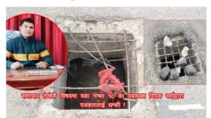 कारकादो देखि पश्चिम् तर्फ जाने विशाल चोक अन्तर्गतको बाटोमा निर्माण गरिएको बाटोको ढलको ढक्कन भत्किएर रातिको समयमा दुर्घटना निम्त्याउने खतरा बढे पछि नील खबरले शुक्रवार समाचार सम्प्रेषण गरेको थियो ।