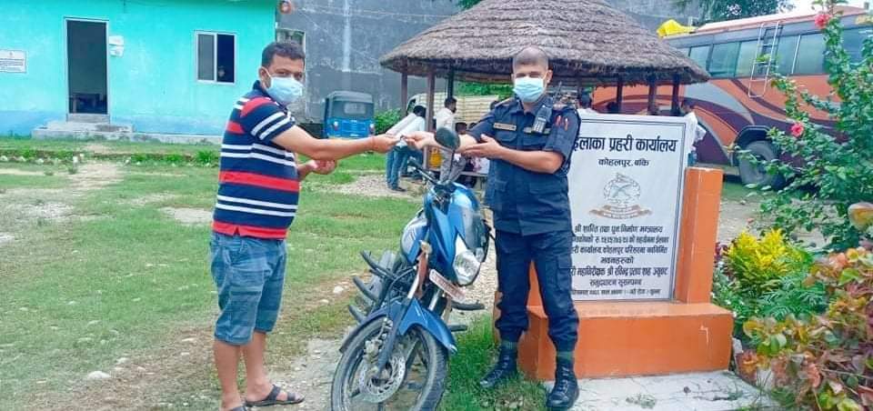कोहलपुर प्रहरीले चोरी भएको मोटरसाइकल धनीलाई हस्तान्तरण