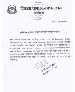 प्रशासनले शुक्रबार एक सूचना निकालेर लामो तथा मध्यम दुरीका सवारीसाधन सञ्चालनको व्यवस्था गर्न व्यवासायीहरुलाई भनेको हो।