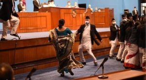 काठमाडौं । सभामुखमाथि प्रश्न उठाउँदै संसदमा नाराबाजी गरेको नेकपा एमालेकी एक सांसद रोष्टममै उक्लिन खोज्दैं सभामुख माथि नै झम्टिन खोजेकी छन्।