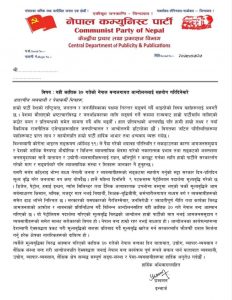 ३० गते नेपाल बन्द सफल पार्न यातायात व्यवसायी र व्यापारीलाई नेकपा विप्लवको पत्र