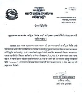 तिरुवाले टेन्सन ब्रो नामक युट्युब च्यानल सञ्चालन गरी उक्त च्यानल मार्फत अश्लील शीर्षक राखी समाजमा अश्लिलता फैलाउने किसिमका भिडियोहरु बनाई युट्युब लगायत सामाजिक सञ्जालमा प्रसारण गरी गरेका थिए ।