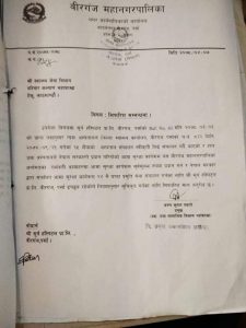 उनले वीरगंज महानगरका प्रमुख प्रशासकीय अधिकृत निश्चलराज पाण्डेलाई फाइल बारे ब्रिफ गसिेको र मेयर साहेब पनि वीरगंज आईपुगेकोले ब्रिफ गरेर अघि बढने बताए ।यसअघि महानगरले ठुलो आर्थिक चलखेलमा गैरकाननुी सिफारिस गरेको तथ्य खुलेको थियो ।