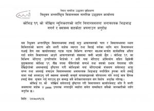 साथै विमानस्थल कार्यालयले विमानस्थलमा स्थान सीमितताका कारण भिडभाडले कोरोनाको जोखिम बढेको भन्दै जरुरी अवस्थामा बाहेक बिदाइ र स्वागतका लागि विमानस्थल नआउन समेत सर्वसाधारणमा अनुरोध गरेको छ ।