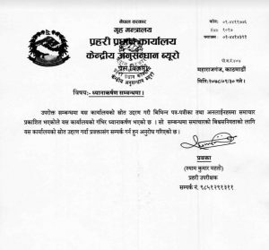 काठमाडौं । नेपाल प्रहरीको केन्द्रीय अनुसन्धान ब्यूरो सीआईबीले स्रोत उद्दरण गरि विभिन्न पत्रपत्रिका तथा अनलाइनमा प्रकाशित भएका समाचारहरुप्रति गम्भीर ध्यानाकर्षण भएको जनाएको छ ।