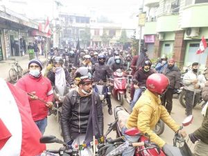 नेपाली काङ्ग्रेस महानगर समिती बिरगंजका अध्यक्ष भोला कलवारको अध्यक्षतामा आज घण्टाघरबाट मोटरसाइकल रैलि निकालेर बिरोध प्रदर्शन गरेको छ ।