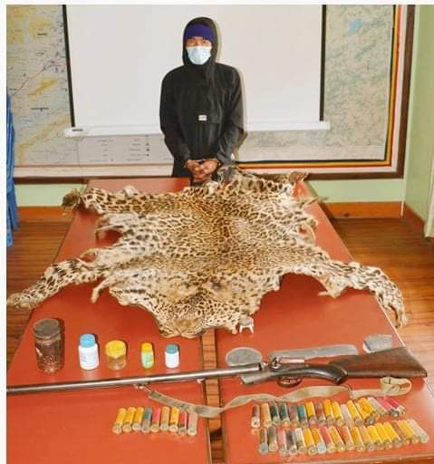 पोखरा । महानगरपालिका-२२ पुम्दि भुम्दी बस्ने २८ वर्षीय खो बहादुर थापालाई वन्यजन्तु चितुवाको जस्तो देखिने छाला, दाँत र विभिन्न हातहतियार सहित बुधबार प्रहरीले पक्राउ गरेको छ ।