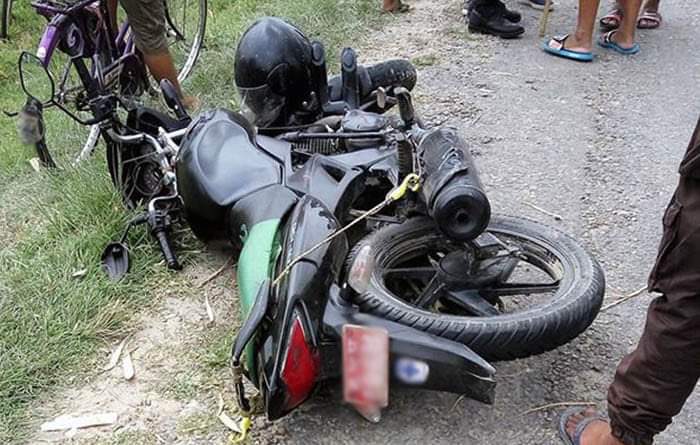 सोही मोटरसाइकलमा सवार चितवन भरतपुर ७ बस्ने रामप्रसाद सापकोटा घाइते भएका छन् । आइतबार बेलुका लमही देखि गढवा तर्फ जाँदै गरेको रा ५ प ५७१४ नम्बरको मोटरसाइकल विपरित दिशाबाट आइरहेको साइकल यात्रीलाई बचाउन खोज्दा लमही नगरपालिका वडा नम्बर ४ बलामपुरमा दुर्घटना भएको हो ।