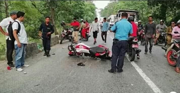 सिरहाको बरियारपट्टीबाट काठमाडौँतर्फ आउँदै गरेको ना७ख ७५३ नंको रात्रिबसले विपरीत दिशाबाट जादै गरेको ना२९प ४४९८ नंको मोटरसाइकललाई गए राति ठक्कर दिएको थियो ।