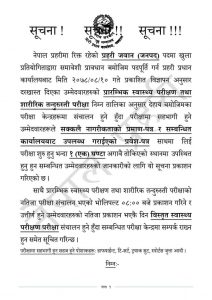 प्रहरी प्रधान कार्यालय मानव स्रोत एवं प्रशासन विभाग, भर्ना छनौट महाशाखाले आइतबार एक सूचना प्रकाशित गरेर उक्त जानकारी दिएको हो । नेपाल प्रहरीबाट