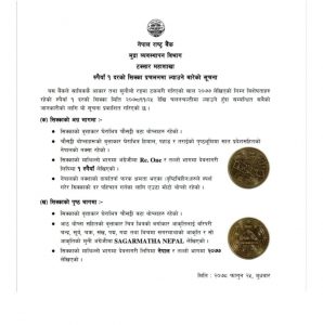 यस बैंकले साविककै आकार तथा सुनौलो रङ्गमा टकमरी गरिएको साल २०७७ लेखिएको निम्न विशेषताहरु रहेको रुपैयाँ १ दरको सिक्का मिति २०७८।११।२५ देखि चलनचल्तीमा ल्याउने हुँदा सम्बन्धित सबैको जानकारीको लागि यो सूचना प्रकाशित गरिएको छ ।