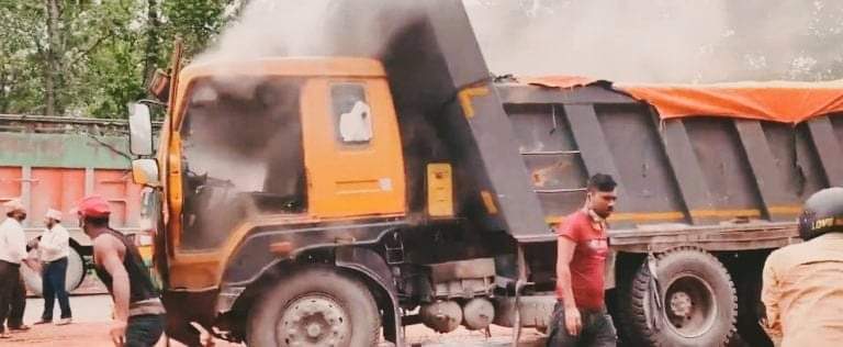 नेपालगन्जमा माटो बोकेको भारतीय टिप्परमा अचानक आगलागीहुँदा टिप्पर नष्ट