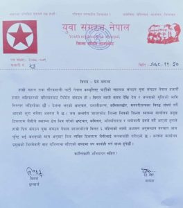 जाजरकोट । विप्लव नेतृत्वको नेपाल कम्युनिस्ट पार्टीको सहायक संगठन युवा संगठन नेपाल जाजरकोटले जिल्ला स्वास्थ्य प्रमुख टिकाराम जैशीलाई कालोमोसो र जुत्ताको माला लगाएको छ।