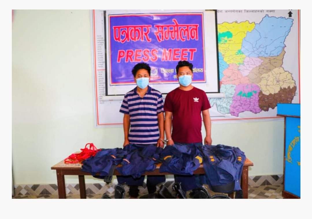 प्रहरीको बर्दिसहित नक्कली प्रहरी बनेर ठगी गरेको आरोपमा पाँखपन नगरपालिका-४ का अर्जुन तामाङ र रमेशकुमार तामाङलाई नक्कली प्रहरीको पोसाकसहित पक्राउ गरेको जिल्ला प्रहरी कार्यालय संखुवासभाका डीएसपी लालध्वज सुवेदीले जानकारी दिए ।