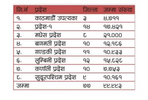 म्यादीमा भर्ना हुन २ लाख ९३ हजार ३१४ जनाले आवेदन दिएका थिए । आवेदन दिनेमध्येबाट ९९ हजार ९९३ जना छनोट गरेर तालिम दिइएको प्रहरी प्रवक्ता (एसएसपी) विष्णु कुमार केसीले रातोपाटीलाई बताए ।