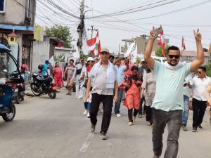 (महेन्द्र सिंह )                                            मतदाताहरुले हौसला थपिदिएको नेपालगन्ज उपमहानगरपालिकाका नेपाली कांग्रेसका तर्फबाट प्रमुख पदका उम्मेदवार प्रशान्त बिष्टले बताउनु भएको छ ।