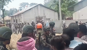 मतदान भित्र ढुङ्गामुदा हुन थाले पछी नियन्त्रणमा लिन प्रहरीको हवाई फायर