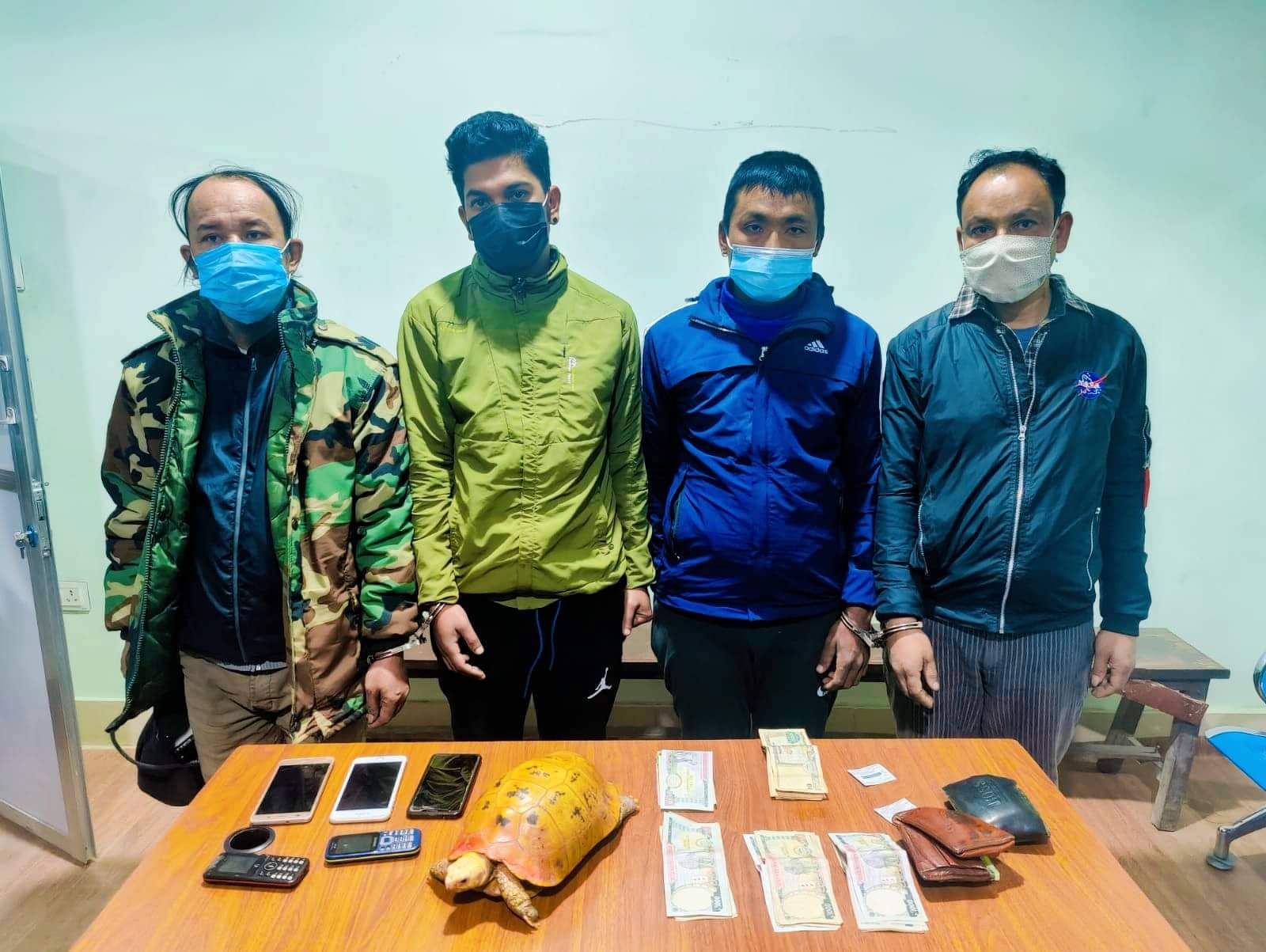 प्रहरीले उनीहरूबाट १० वटा कछुवाका बच्चा बरामद गरेको छ। तीन वटा मोबाइल र एउटा बा ९९ प ४९४४ नम्बरको बाइक पनि बरामद गरेको छ।