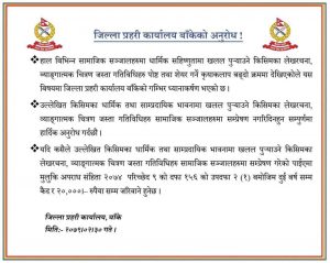 प्रहरीले भनेको छ–‘हाल विभिन्न सामाजिक संजालहरुमा धार्मिक सहिष्णुतामा खलल पुर्‍याउने किसिमका लेखरचना, ब्याङ्ग्यात्मक चित्रण जस्ता गतिविधिहरु पोष्ट तथा शेयर गर्ने क्रियाकलाप बढ्दोक्रममा देखिएकाले त्यस्ता कार्य नगर्न अनुरोध गरिन्छ ।’