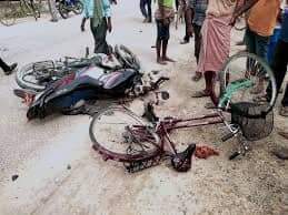 दाङ । बिहीबार राति ९ बजे घोराहीदेखि सौंडियारतर्फ जाँदै गरेको रा ३ प २९२२ नम्बरको मोटरसाइकलले घोराही– ७ बेसाईमा सडकमा गुडिरहेका २ वटा साइकलमा ठक्कर दिएको हो ।