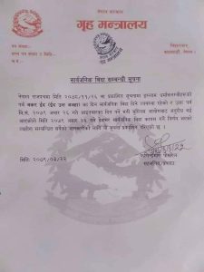 सरकारले आईतबार सार्वजनिक बिदा दिने