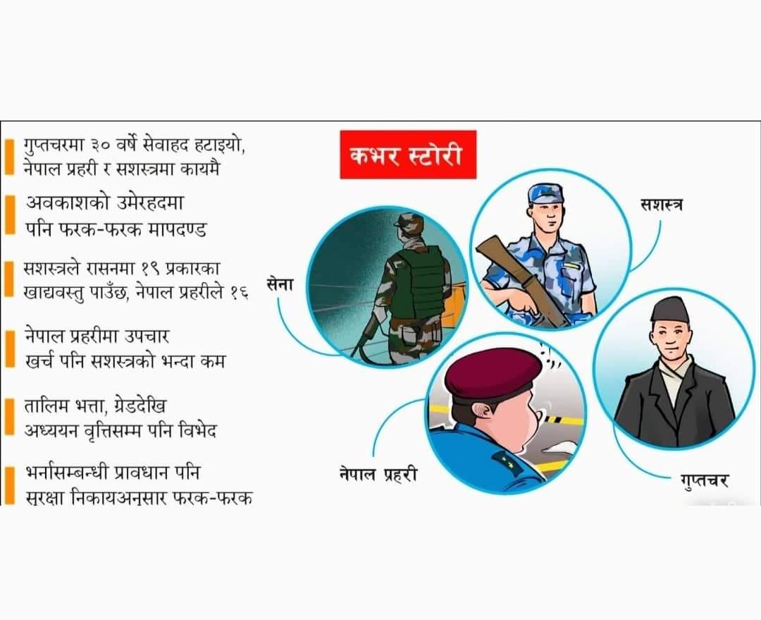 गुप्तचरमा ३० वर्षे सेवाहद हटाइयो, नेपाल प्रहरी र सशस्त्रमा कायमै