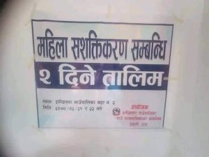 दाङ । दंगिशरणमा महिला शसक्तिकरण सम्बन्धि २ दिने तालिम सम्पन्न भएको छ। दङ्गीशरण गाउपालिकाको आयोजनामा महिला शसक्तिकरण सम्बन्धि २ दिने तालिमको आज एक कार्यक्रमका बिच समापन गरिएको छ ।
