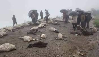खर्कमा अचानक परेको चट्याङमा परी स्थानीय कार्की र लुड्प्या महताराका ५० बढी बाख्रा तथा दुई गाई गोरु मरेका छन् । चट्याङ परेको स्थान गाउँबाट टाढा भएकाले क्षतिको विस्तृत विवरण नआएको वडाध्यक्ष कार्कीले बताए । रासस