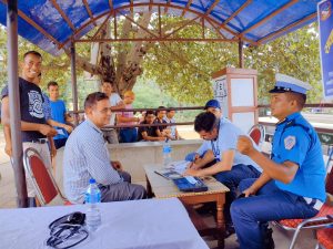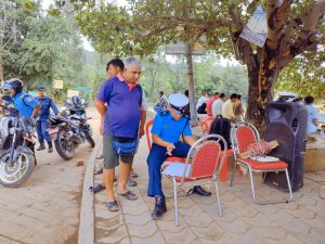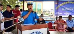 ट्राफिक प्रहरीले सवारी चालक तथा सह चालकलाई लक्षित गरी आयोजना गरेको स्वास्थ्य परिक्षण शिविरमा ती चालक तथा सहचालकको स्वास्थ्य परिक्षण गरिएको हो ।