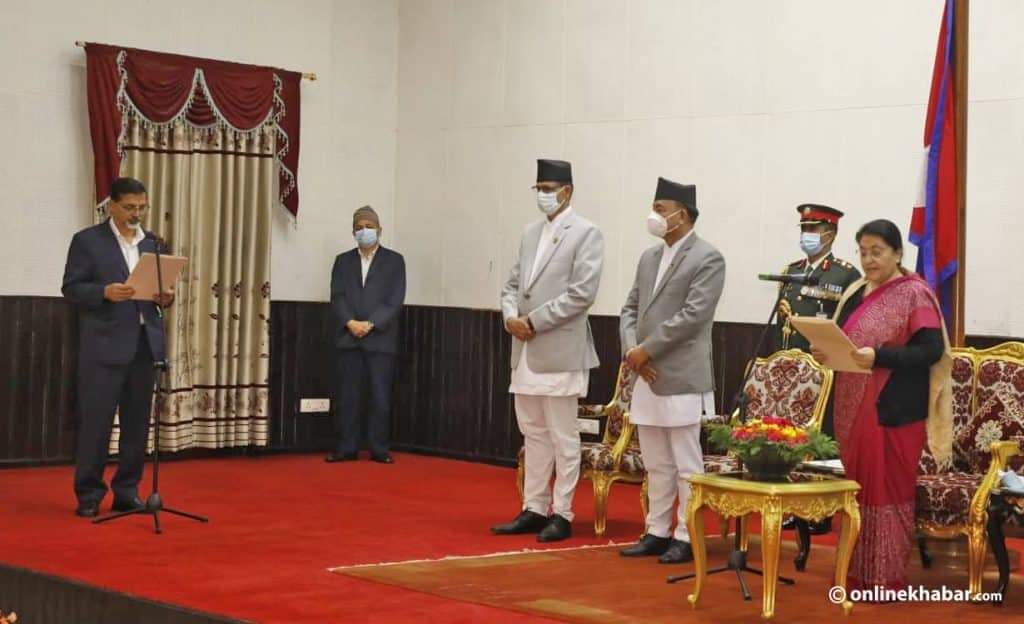 काठमाडौँ । अर्थमन्त्री जनार्दन शर्माले पद तथा गोपनीयताको शपथ लिएका छन् ।