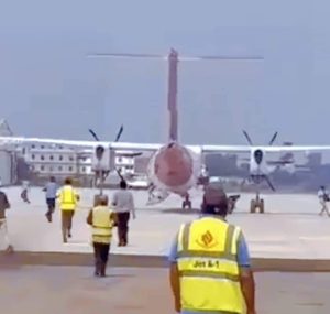 अहिले जहाज सुरक्षित अवतरण भएको छ । जहाजमा चालक दलका सदस्यसहित ७९ जना यात्रारत थिए ।