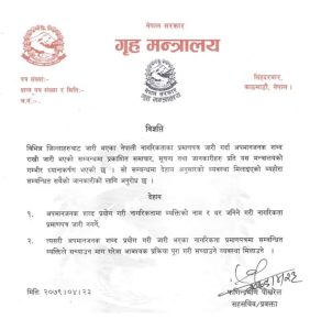 गृह मन्त्रालयले नाम र थरमा नागरिकतामा अपमानजनक नाम न राख्न निर्देशन