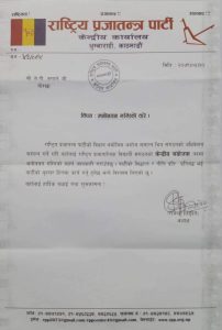 काठमाडौं । राप्रपा निकट राष्ट्रिय प्रजातान्त्रिक विद्यार्थी संगठनको संयोजकमा जेपी बगाले मनोनित भएका छन् । पार्टी अध्यक्ष राजेन्द्र लिङ्देनले विधान बमोजिम बगालेलाई मनोनयन गरेका हुन् ।